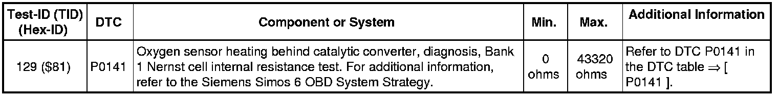 - If any component or system fails to meet the specified values, refer to Diagnostic "Mode 03: Interrogating Fault Memory" to check for stored DTC's or the corresponding diagnostic repair procedure.