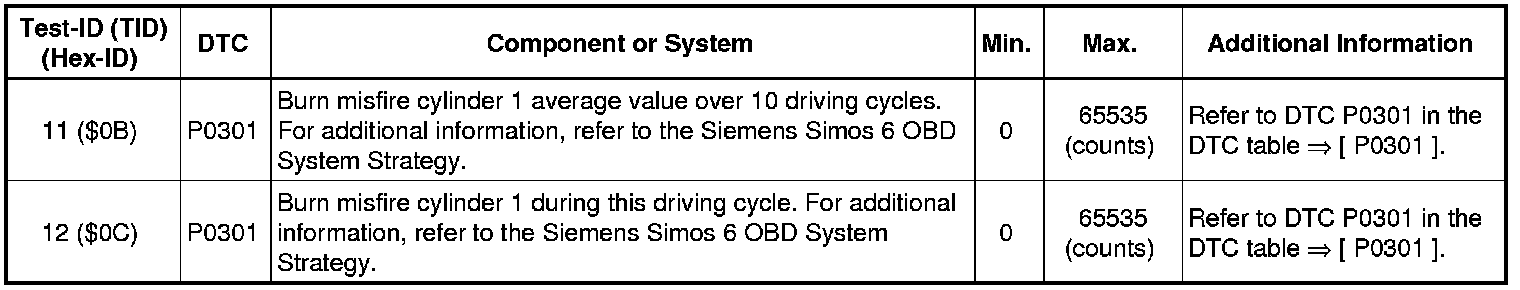 • Depending on diagnostic tester and protocol used, the information displayed in diagnostic mode 06 may be referred to by different names such as Test-ID (TID), Hex-ID, Component-ID (CID), or On-Board Diagnostic Monitor Identifier (OBDMID).