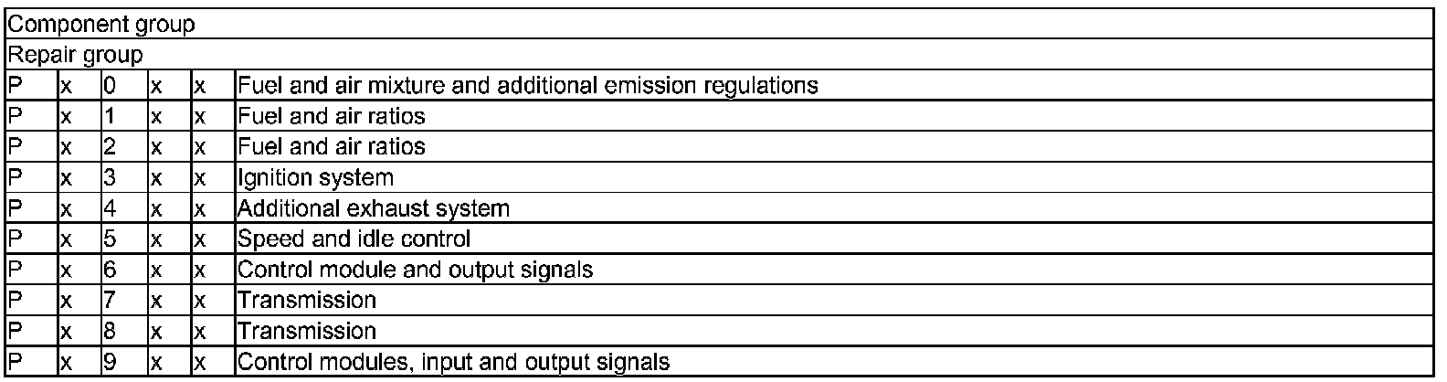 The following tables provide a breakdown and explanation of the DTC code.