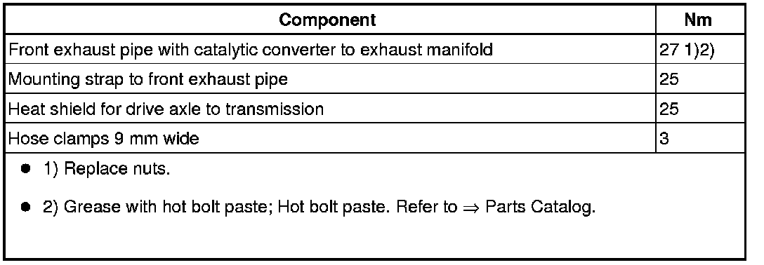 - Remove nuts - 1 - and - 3 - which are accessible from bottom for front exhaust pipe/exhaust manifold.