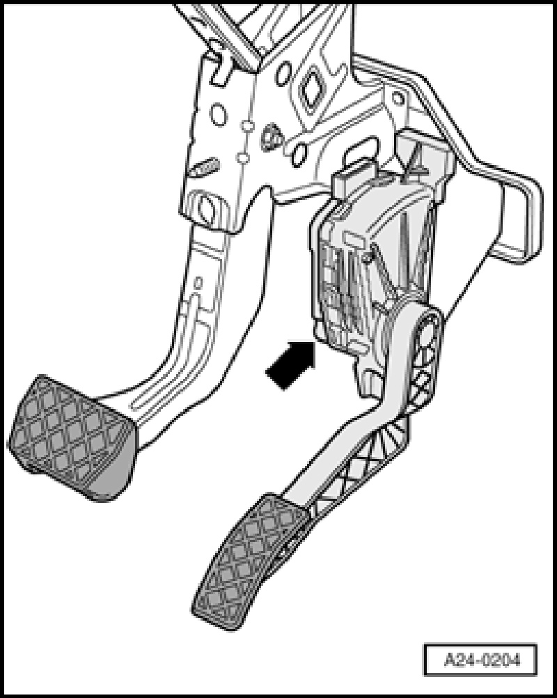NOTE: The Throttle Position (TP) Sensor G79 and Accelerator Pedal Position Sensor 2 G185 are integrated in the gas pedal module and cannot be replaced individually.