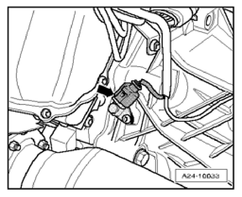 - Only for vehicles with automatic transmission: On left and right engine mounts - arrow -.