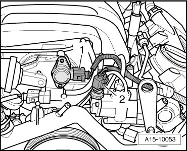 - Disconnect the electrical connectors at engine coolant temperature sensor (G62) - 1 - and intake manifold flap change-over valve (N239) - 2 -.