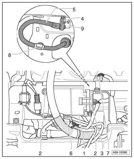 - Slide pressure sensor -G452- - 4 - along the side of the bracket - 9 -.