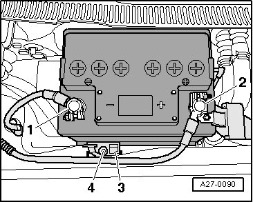 Only maintenance-free batteries conforming to standards "TL82506 " (as of December 1997) and "VW75073" (as of August 2001) may be installed.