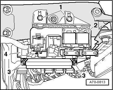 - Remove nuts - 3 - and remove Vehicle Electrical System Control Module (J519) with wiring connected.