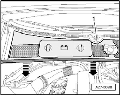 - Remove cover for electronics box in plenum chamber - arrows -.
