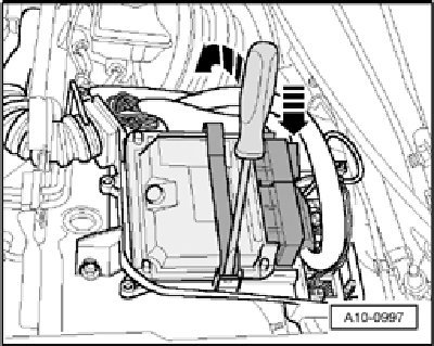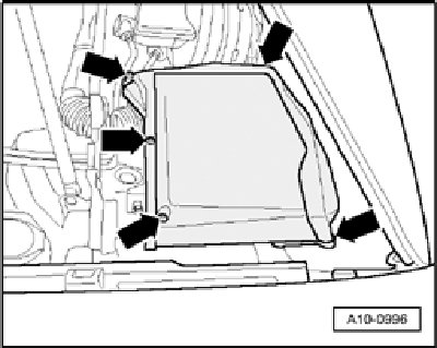 - Remove rubber seal of plenum chamber cover in direction of - arrow -.