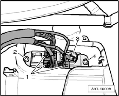 - Pull off retaining clips - 1 - and detach cowl panel grille - 5 -.