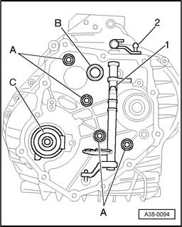 - Remove axial sealing elements - A - and - B - from the transmission.