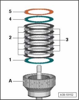 - Remove all lining discs - 2 - and outer discs - 3 - from input shaft cylinder - A -.