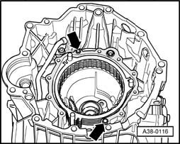 - Check whether bushings - arrows - for centering the input shaft cover on transmission housing are installed and seated securely.
