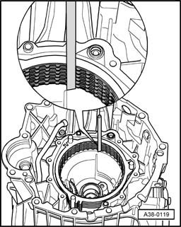 The reverse gear clutch plates must not be removed from the transmission housing.