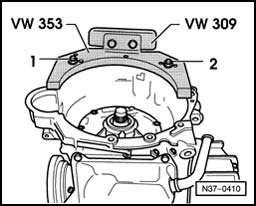 - Install transmission support VW 353 onto holding plate VW 309.