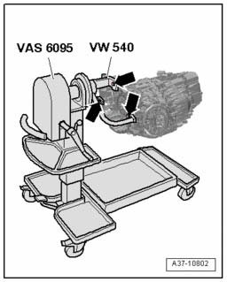 - Secure engine and transmission holder VW 540 to the transmission - arrows -.