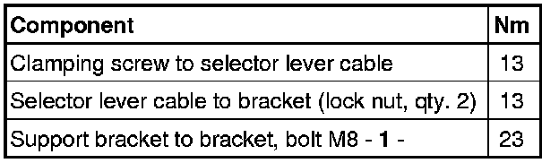- Install the support bracket for the selector lever cable tightly to the bracket - 1 -.
