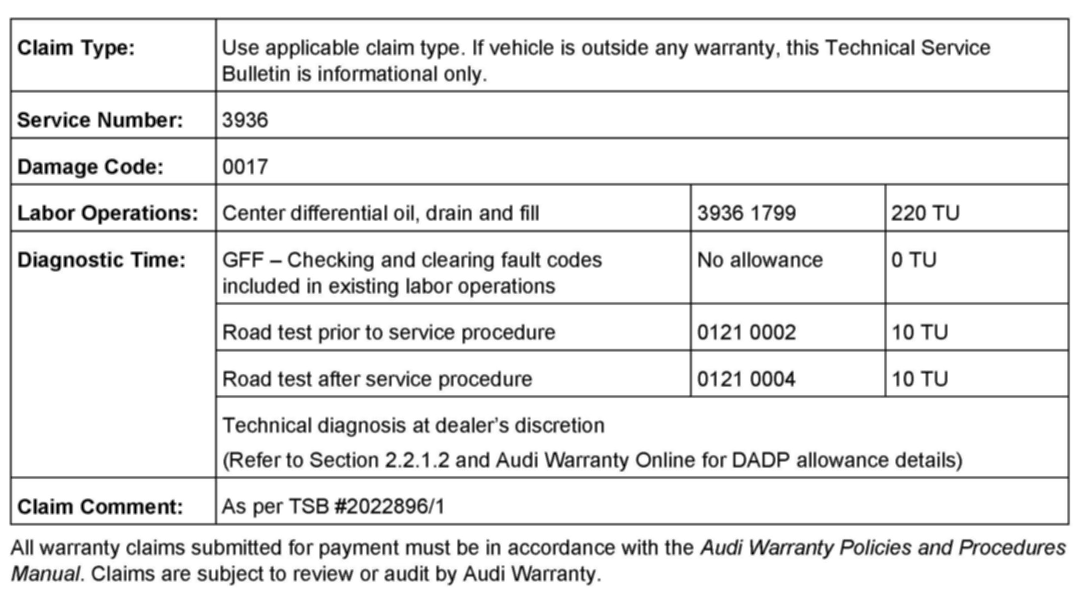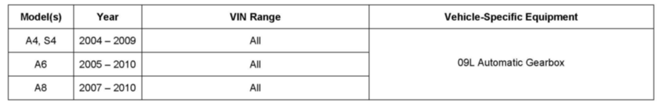 - If the oil change does not repair the concern, submit a Technical Assistance Center ticket under the Concern Type: Audi Automatic Transmission.