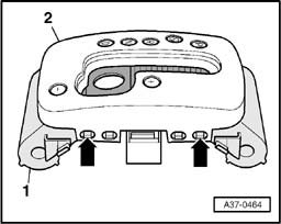 - Press down retaining hooks - arrows - and pull off cover - 2 - from guide - 1 -.