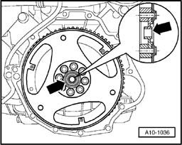 - Turn over counterhold tool 10-201 to tighten bolts.