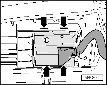 - Use small screwdriver to carefully release fasteners - arrows -.