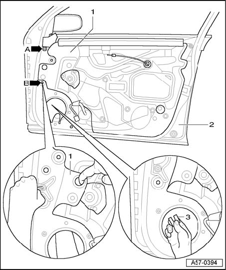 - By loosening mounting bolts - arrow A - and removing or adding spacers at bolt point - B -, the position (inclination) of window frame in A-pillar region can be adapted to roof molding.