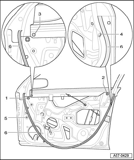 - By loosening bolt - arrow - and placing underneath or removing spacers, the contact pressure of seal in A-pillar region can be adjusted.