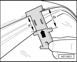 - For a correct adjustment, lower edge of window frame must be located between markings - a -, (line on template - arrow - ) or - b -