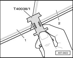 - Projection (maximum 0.8 mm) of front door at rear door must be in range of template cut-out - arrow -.