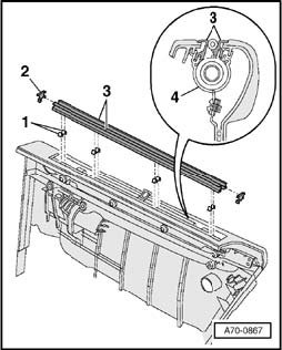 - Remove guiding strips - 3 - from holding clips - 1 -.