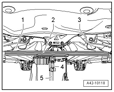 - Install (V.A.G 1383 A) with (V.A.G 1359/2) and a suitable wooden block - 2 - at rear final drive and support at rear.