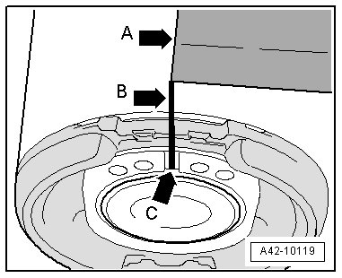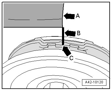 - Apply marking - arrow B - of bearing groove - arrow C - to subframe mount - arrow A -.