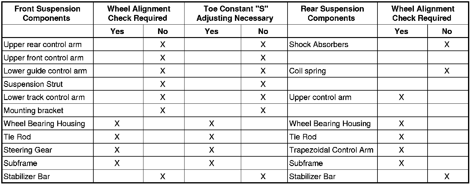 Axle alignment should not be performed until the vehicle has been driven 1,000-2,000 km, since it takes this long for the suspension to settle.