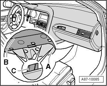 - Remove the cover - A - from the lower glove compartment cover - B -.