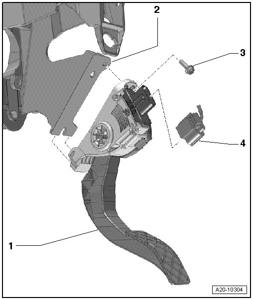 Removing and installing, refer to => [ Accelerator Pedal Module, Version 2 ] Accelerator Pedal Module, Version 2.