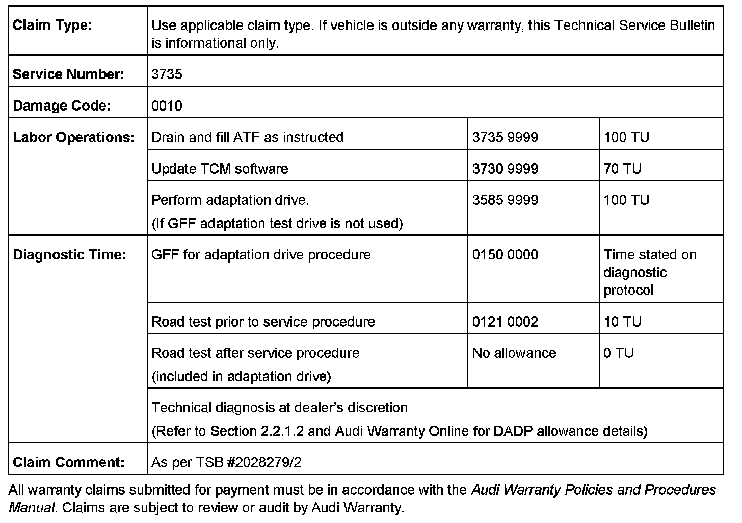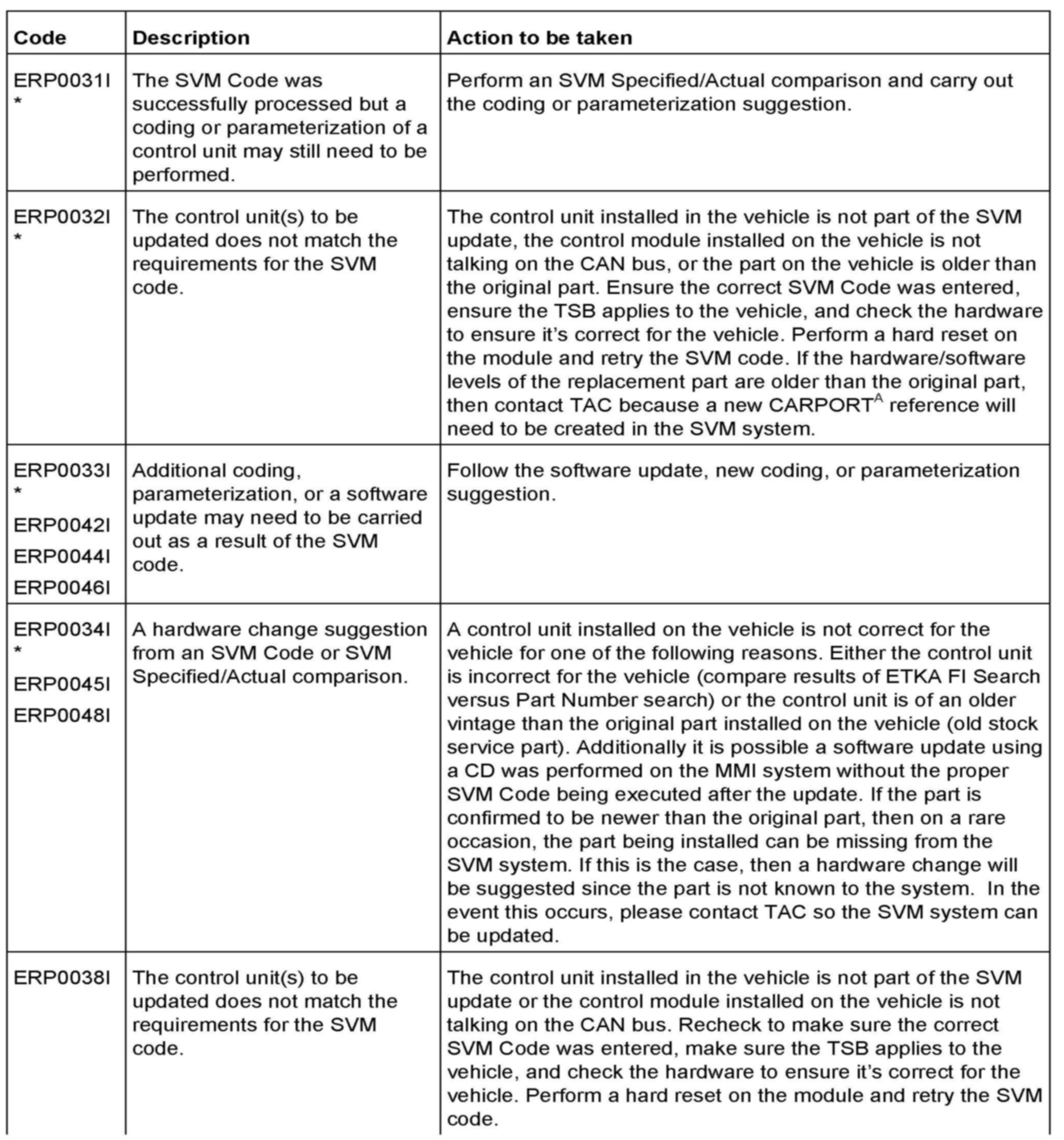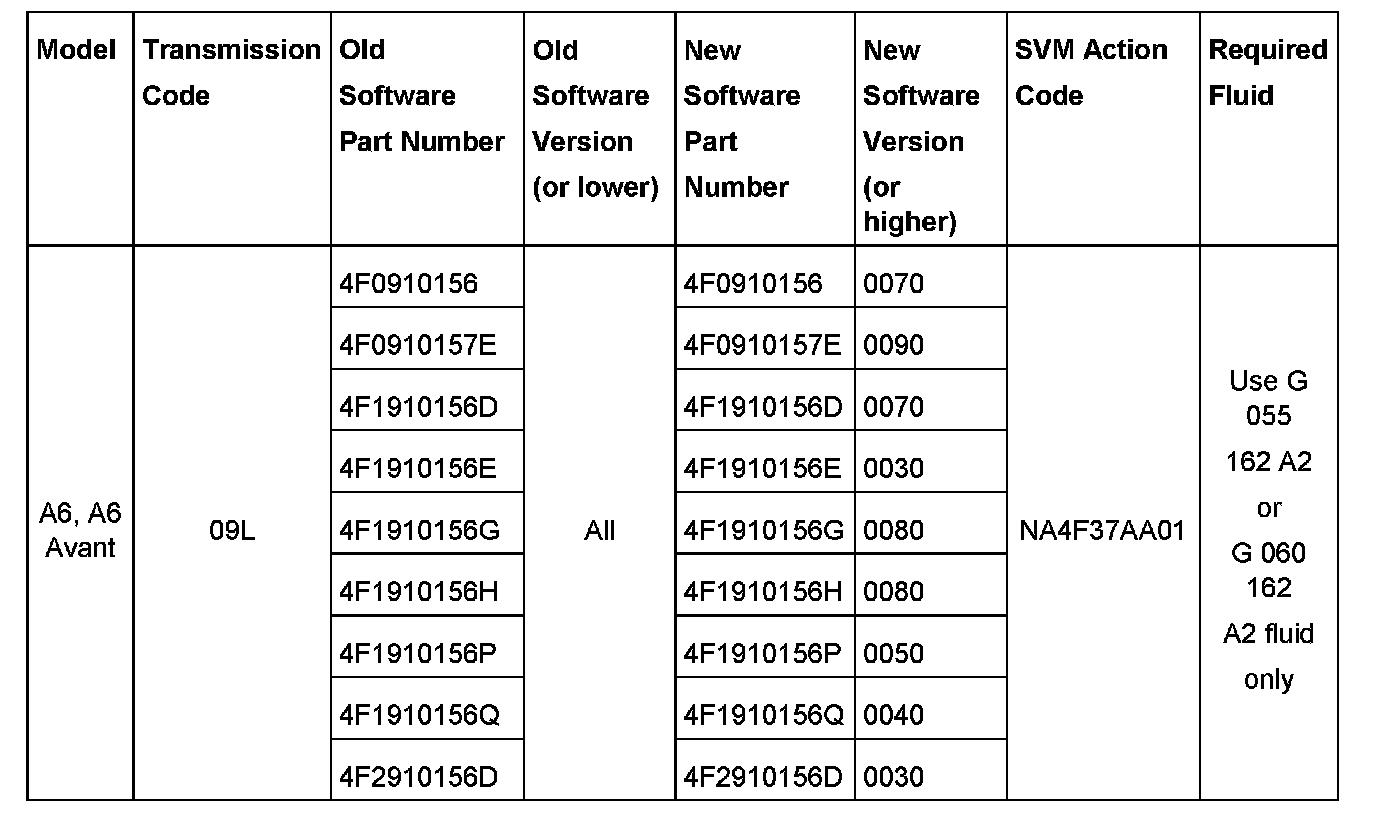 2. Update the Transmission Control Unit (J217) using the SVM action code as listed in the table above if necessary