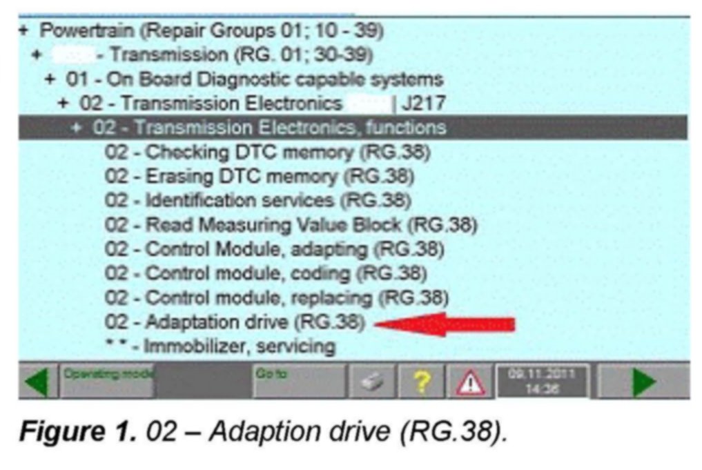 2. For later vehicles this test plan can be found in GFF or Guided Functions >> Powertrain >> 09L Transmission>> 01 On Board Diagnostic capable system >> 02 Transmission electronics, functions >> 02- Adaptation Drive.