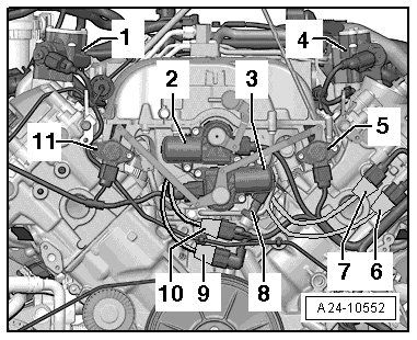 10 Ignition Coils Cylinder Bank 2 -N323-, -N324-, -N325- and -N326- => [ Left Cylinder Bank 2 ] See Image Below.
