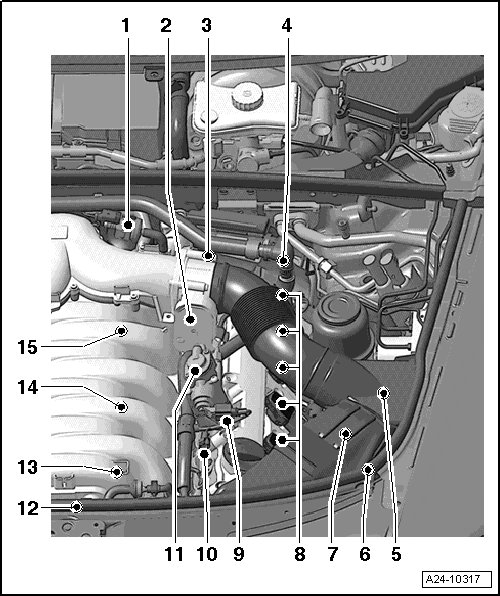 7 Throttle Valve Control Module -J338- => [ Installation Locations from Top ] See Image Below.