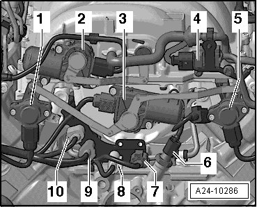 1 - Engine Control Module (ECM) 2 -J624- (slave)