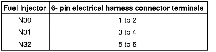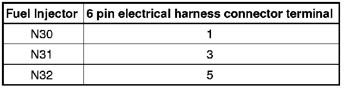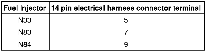 The following test procedure is used to diagnose Fuel Injectors (N30, N31, N32, N33, N83, and N84).