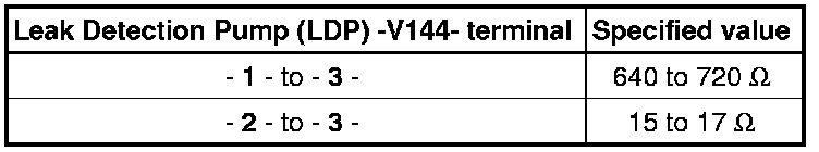 - Using a Multimeter , check the Leak Detection Pump (LDP) (V144) for resistance as follows: