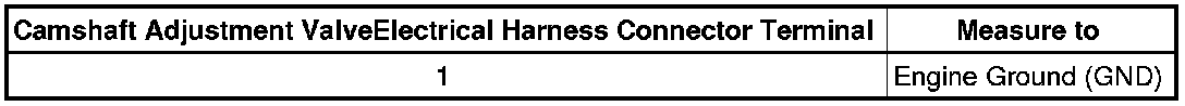 - Using a Multimeter, check the relevant Camshaft Adjustment Valve electrical terminals 1 to 2 for resistance.