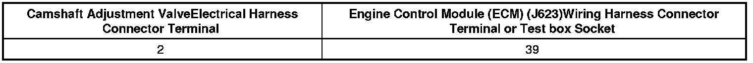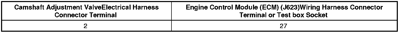- Using a Multimeter, Check the Camshaft Adjustment Valve electrical harness connector to the Engine Control Module (ECM) (J623) electrical harness connector for resistance.