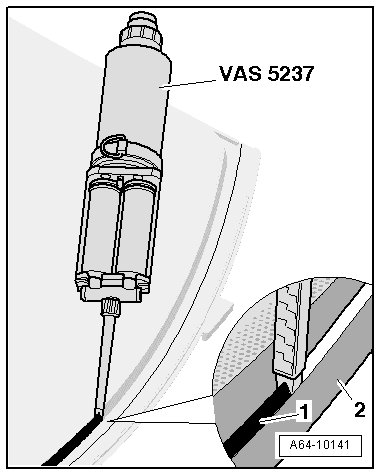 - When reusing the undamaged window, cut rest of adhesive material on window and flange with Electric Cutter (V.A.G 1561 A) and Scraper (25 mm) (V.A.G 1561/8) so it is even, but do not remove completely.