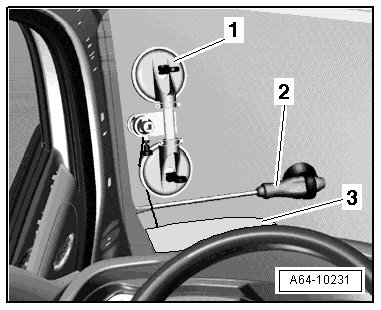- If necessary, move the protective foil - 3 - along with the wire and cut the windshield free with the spool - 1 -.