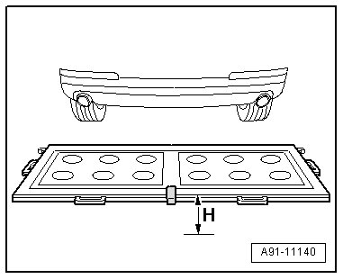 - Measure the height of the calibration device, dimension - H - (top edge platform - floor).