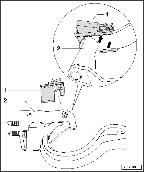 • Before installing gas-filled struts, push wedge - 3 - in - direction of arrow - until it makes contact with roof - 4 - with light pre-tension.