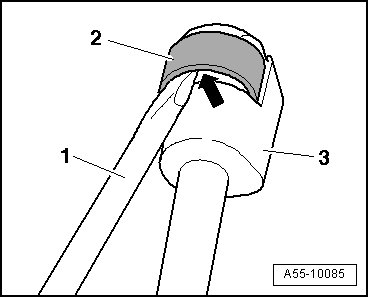 • Using screwdriver, lift retaining spring - 2 - as shown and remove gas-filled strut - 1 - from upper ball stud - 3 -.