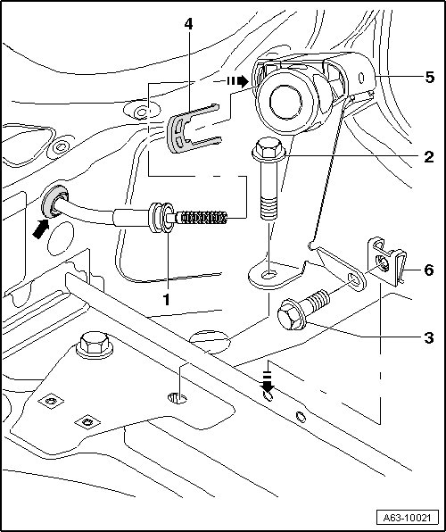 When removing bumper cover crossmember, you can only disengage the cable- 1 - at the hand wheel- 5 -. You should not remove the cable from the trailer hitch at the swivel joint under any circumstances.