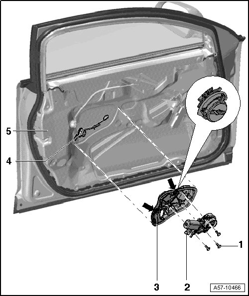 2 - Driver Door Closing Assist Motor -V302- or Front Passenger Closing Assist Motor -V303- (only models with closing assist)